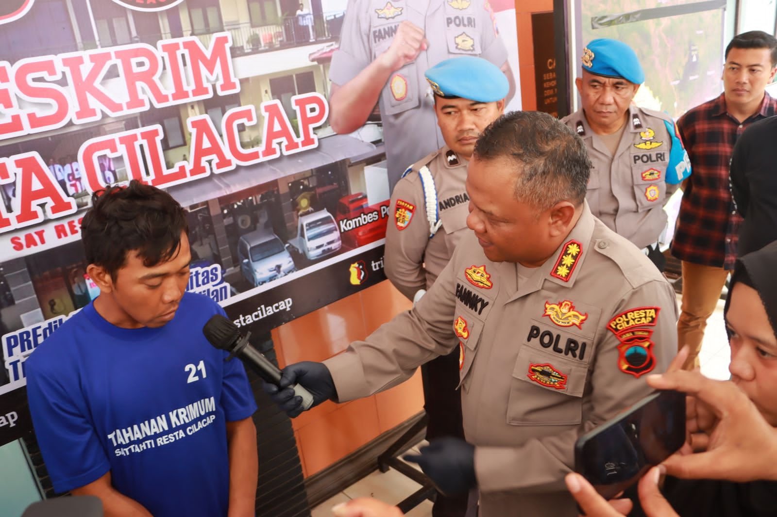 Kapolresta Cilacap Kombes Pol Fannky Ani Sugiharto, S.I.K., M.Si mengatakan tersangka berhasil di tangkap oleh jajaran Satreskrim Polresta Cilacap pada hari Kamis 14 September 2023 sskitar pukul 02.00 WIB ketika berada di Alun Alun Banyumas.