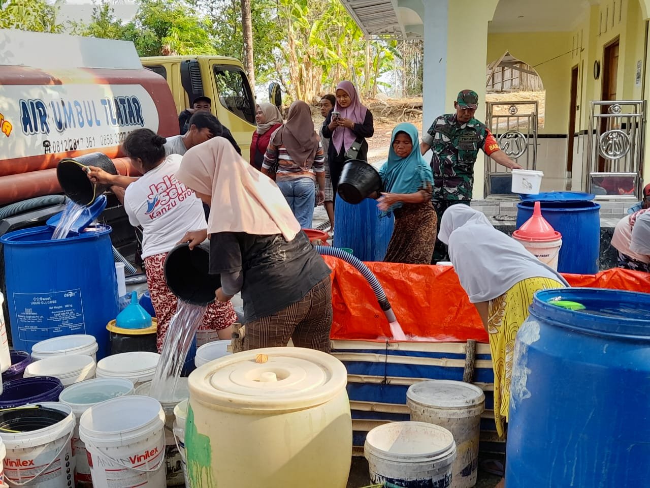 BN News. Boyolali || Babinsa Koramil 17/Wonosegoro Kodim 0724/Boyolali Serma Agus W ikut membantu penyaluran air bersih untuk kebutuhan warga di wilayah binaan yang mengalami kekeringan di Desa Jatilawang Kecamatan Wonosegoro Kabupaten Boyolali. (18/09/23)