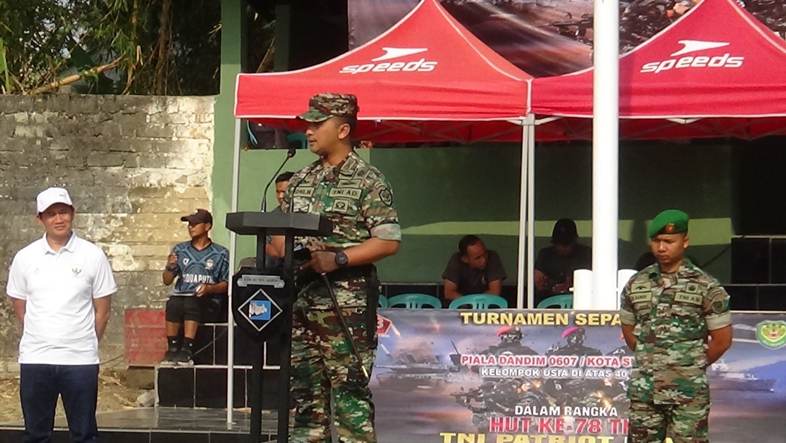 BN NEWS, Sukabumi || Komandan Kodim 0607 /Kota Sukabumi, Letkol Inf. Yudhi Hariyanto,S.Hub.Int dengan penuh semangat membuka acara pembukaan Piala Dandim dalam rangka memperingati HUT TNI ke-78  yang diadakan di Lapangan Makodim 0607 Jalan R.A. Kosasih, Sukaraja, Sukabumi. Jum’at (29/09/23).