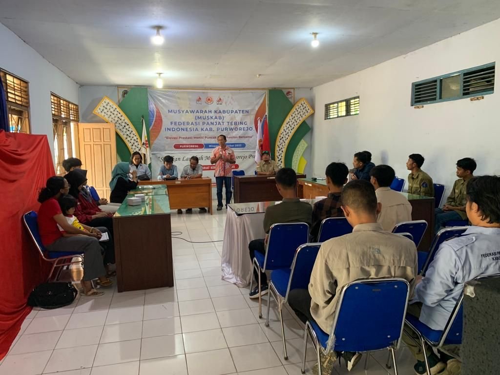 MUSKAB pada hari Minggu, 8 Oktober 2023 dilaksanakan di Kantor KONI Purworejo – Kawasan kantor Kecamatan Purworejo, dengan dihadiri oleh beberapa unsur organisasi, seperti Mapala, Sispala, Guru Sekolah, Pemerhati Panjat Tebing, Orang Tua atlet hingga Komunitas Pendaki Gunung. Seluruh komponen tersebut merupakan undangan yang telah menjadi relasi FPTI Purworejo selama ini, dan tentunya untuk mempererat silaturahmi agar dapat saling menguatkan kegiatan-kegiatan positif kedepan.