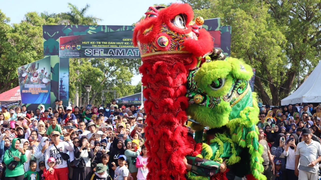 Dandim 0711/Pemalang Letkol Inf Ade Afri Verdaniex, S.I.P., bersama Forkopimda melepas ribuan peserta jalan sehat Gebyar Festival TNI tahun 2023 yang diramaikan dengan iringan Drumd band dan Barongsai naga doreng dari Yon Arhanudse 15/Bhaladika Semarang, Minggu (15/10/2023).
