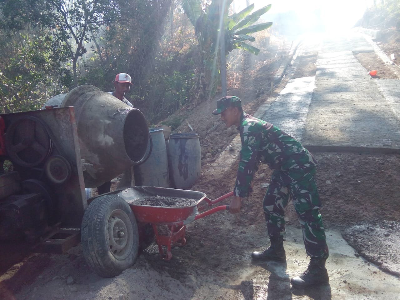 Lebih lanjut dikatakan, pembangunan sarana fasilitas umum merupakan suatu kebutuhan warga, sehingga pembangunan mencapai hasil yang maksimal. Dan diharapkan juga setelah selesai pembangunan jalan rabat beton, warga dapat merawat dan menjaganya,” ujar Danramil.