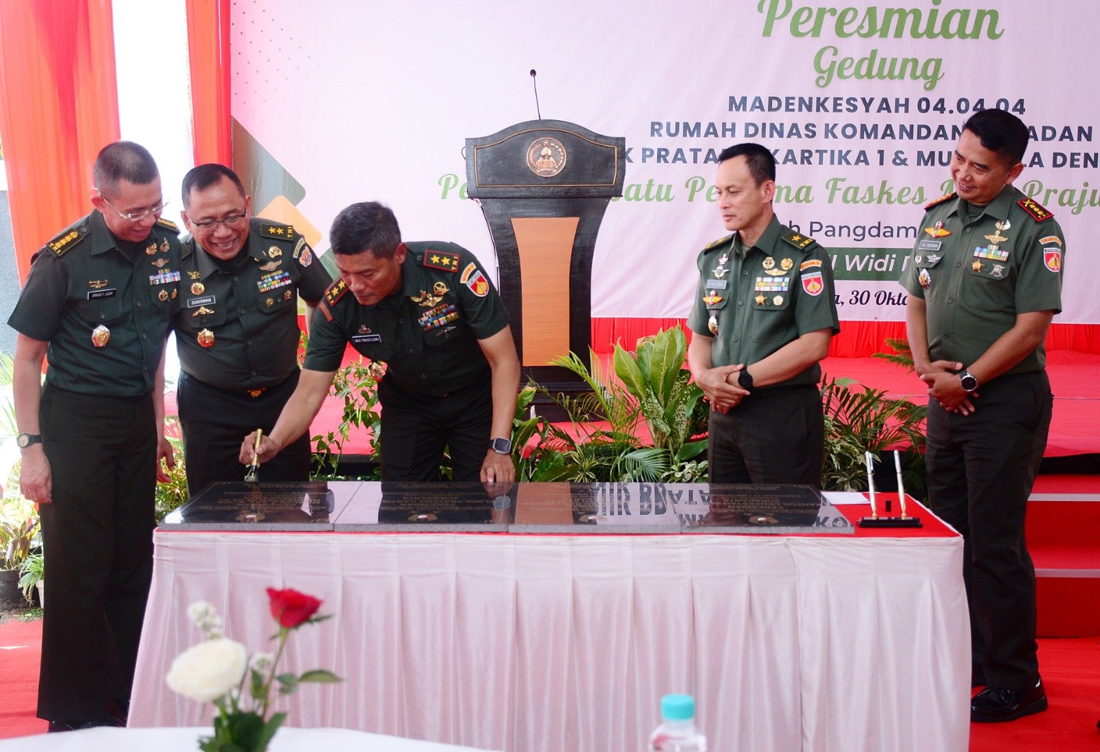BN News. Surakarta || Pangdam IV/Diponegoro Mayjen TNI Widi Prasetijono meresmikan Gedung Madenkesyah 04.04.04 yang meliputi Gedung Kantor, Rumah Dinas Komandan dan Wadan, Klinik Pratama Kartika 1, serta Mushola Denkesyah 04.04.04 di Surakarta. Acara ini juga disertai dengan peletakan batu pertama pada pembangunan faskes mess Prajurit dan Dokter. Senin (30/10/2023).