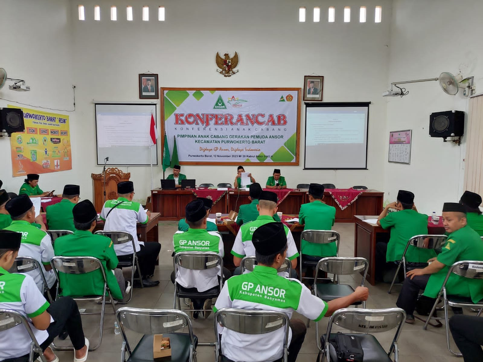 BN News. Banyumas || Minggu, 12 November 2023 dilaksanakan Konferensi Anak Cabang Gerakan Pemuda Ansor Kecamatan Purwokerto Barat. Pembukaan Konferancab dimulai jam 10.00 WIB, Dihadiri Oleh Forkompincam bapak Camat, Kapolsek Danramil ,Ketua Karang taruna Kecamatan, ketua PPK ,Panwascam , Ibu Lurah Kelurahan Rejasari ,pengurus Wilayah ( PW ) Ansor Jawa Tengah, Diwakili. Oleh Kang zaed Selaku Wakil Sekretaris PW. Ketua Pengurus Cabang ( PC ) Gerakan Pemuda Ansor Kabupaten Banyumas Muhamad Luqman (Gus Luqman). Ketua Tanfidziyah Majlis Wakil Cabang (MWC) Kyai Achmad Mustofa.