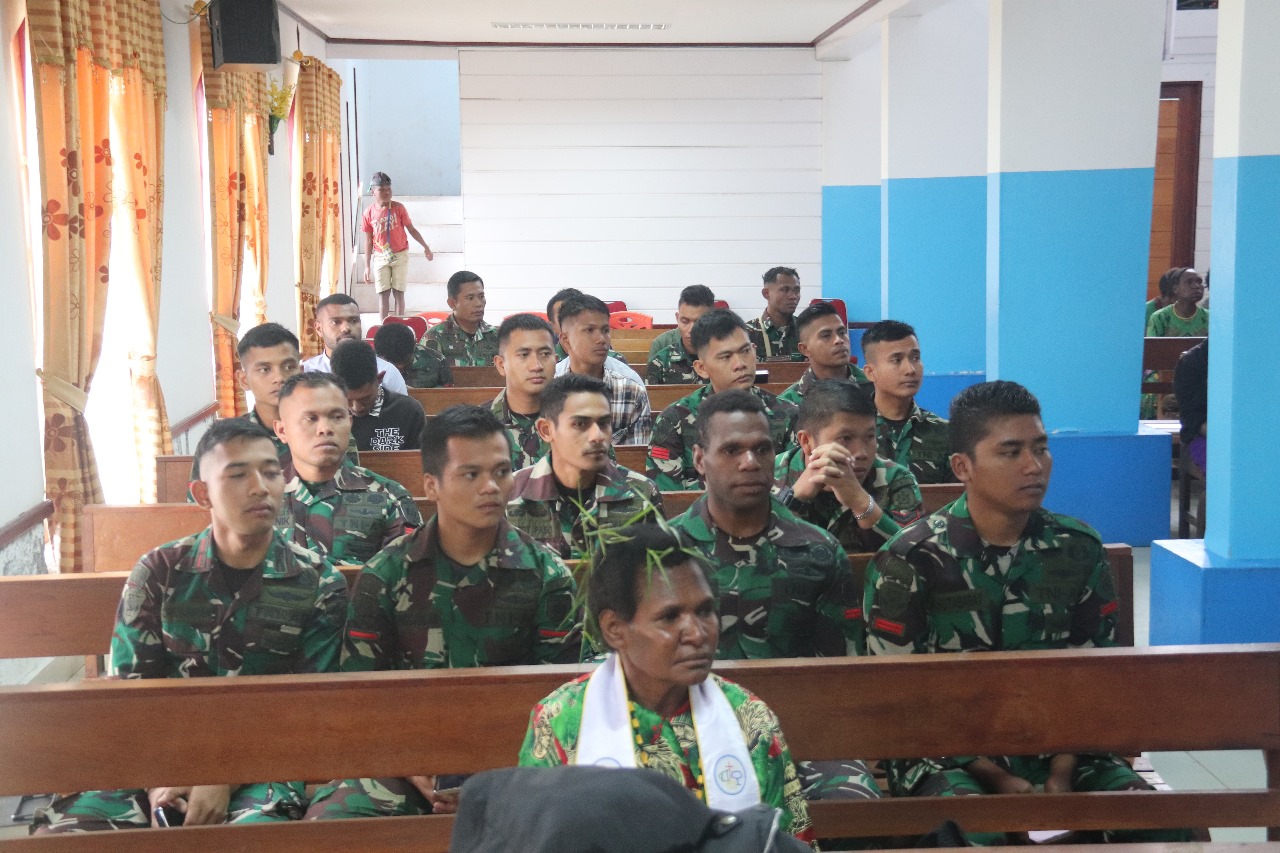 BN NEWS || Intan Jaya – Prajurit Satgas Mobile 330 Kostrad yang beragama nasrani turut melaksanakan ibadah minggu bersama masyarakat di Gereja Kemah Injil Indonesia (GKII) Antiokhia Kampung Yokatapa, Sugapa, Kab. Intan Jaya, Prov. Papua Tengah, pada Minggu (12/11/23)