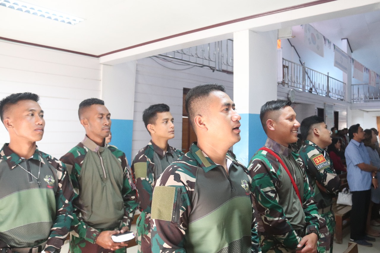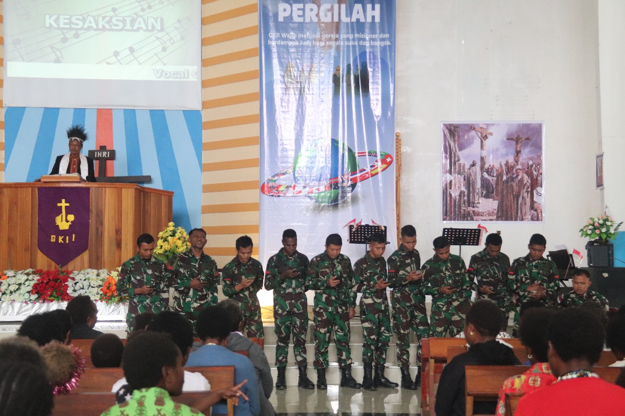 Pada kegiatan tersebut, suara merdu lantunan lagu rohani dari grup vokal Satgas Yonif Para Raider 330/Tri Dharma turut tampil mengiringi kegiatan ibadah minggu.