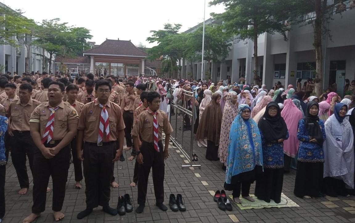 Dudiyono selaku pembina Rohis mengatakan, “alhamdulillah kegiatan doa bersama ini berjalan dengan lancar. Pengurus Rohis ini sangat bersemangat dan mempersiapkan kegiatan ini satu minggu yang lalu.”