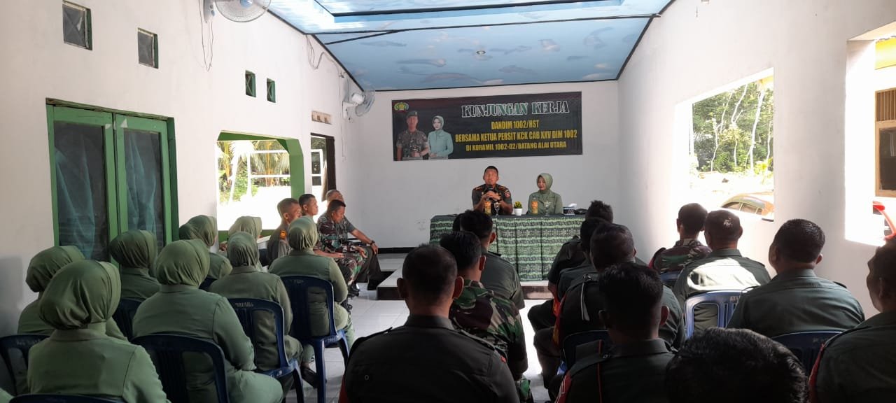BN News. Barabai || Komandan 1002/HST Letkol Inf Fery Perbawa.S.Hub.Int.,M.Han bersama Ketua Persit Kartika Chandra Kirana Cabang XXV Dim 1002 Koorcab Rem 101 PD VI/Mulawarman Ny.Maulida melakukan kunjungan kerja di Koramil 1002-02/Batang Alai Utara.Rabu (22/11/2023).