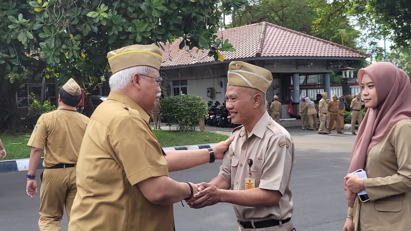 Usai apel seluruh ASN berjabat tangan penuh haru dengan Sekda Banyumas Wahyu Budi Saptono.