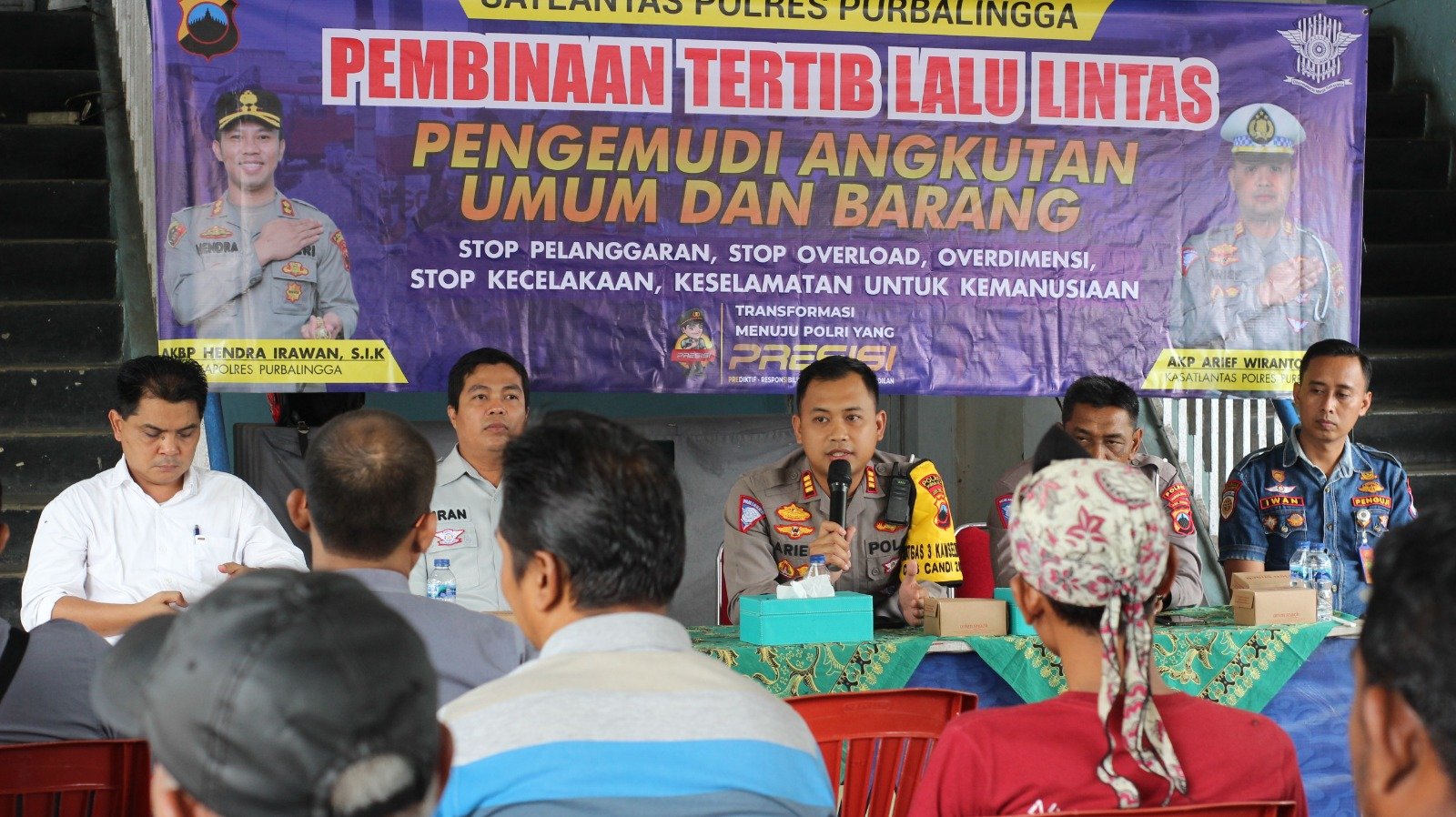Kasat Lantas Polres Purbalingga AKP Arief Wiranto mengatakan hari ini kami bekerja sama dengan Dinas Perhubungan, Jasaraharja dan Organda mengadakan sosialisasi tertib lalu lintas terhadap sopir angkutan umum dan angkutan barang.