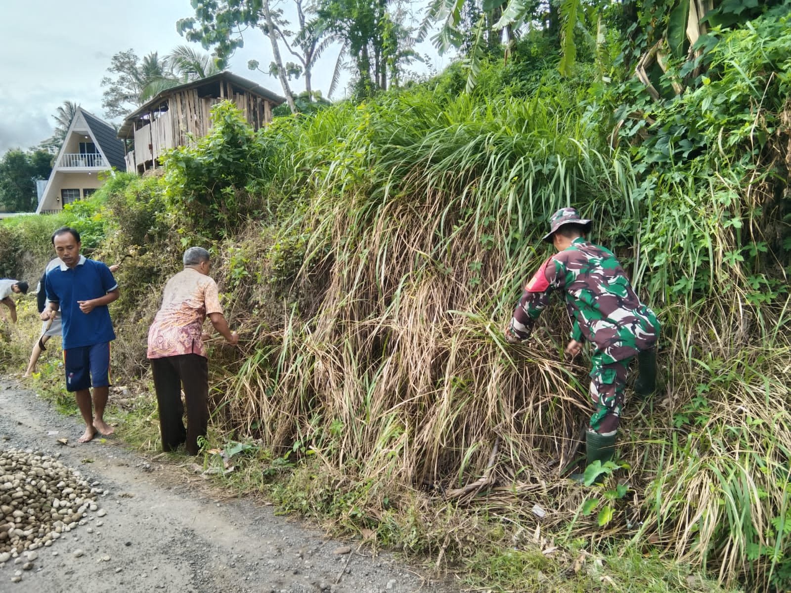 Dalam kegiatan ini, Sertu Wahyudi tidak sendirian karena juga melibatkan H. Kholik (Tomas) dan penduduk setempat. Kegiatan kerja bakti yang dilakukan adalah pembersihan Jalan Dk. Bongkot RT. 17/05 yang akan di cor untuk persiapan pengecoran sepanjang kurang lebih 300 meter.