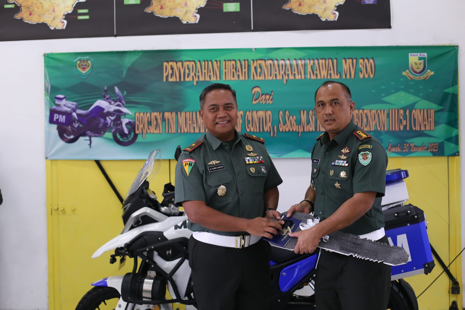 Pada kesempatan itu Brigjen TNI M. Yusrif Guntur, menyerahkan kendaraan Hibah Sepeda Motor Kawal jenis Hunter Maverik MV 500 untuk operasional Subdenpom III/5-1 Cimahi.