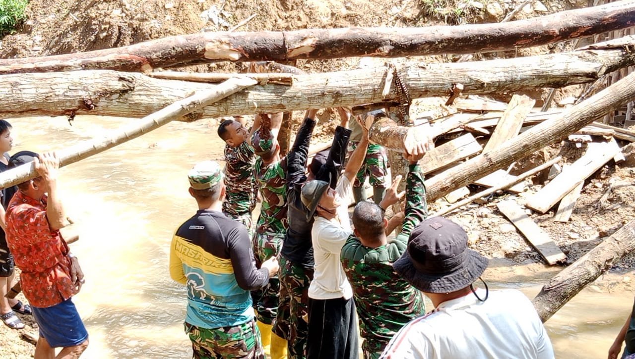 Agar warga bisa keluar dan beraktivitas kembali, kami bersama dengan masyarakat gotong royong bersama membangun jembatan dari batang pohon dan papan, dengan harapan akses dari masyarakat bisa normal kembali,