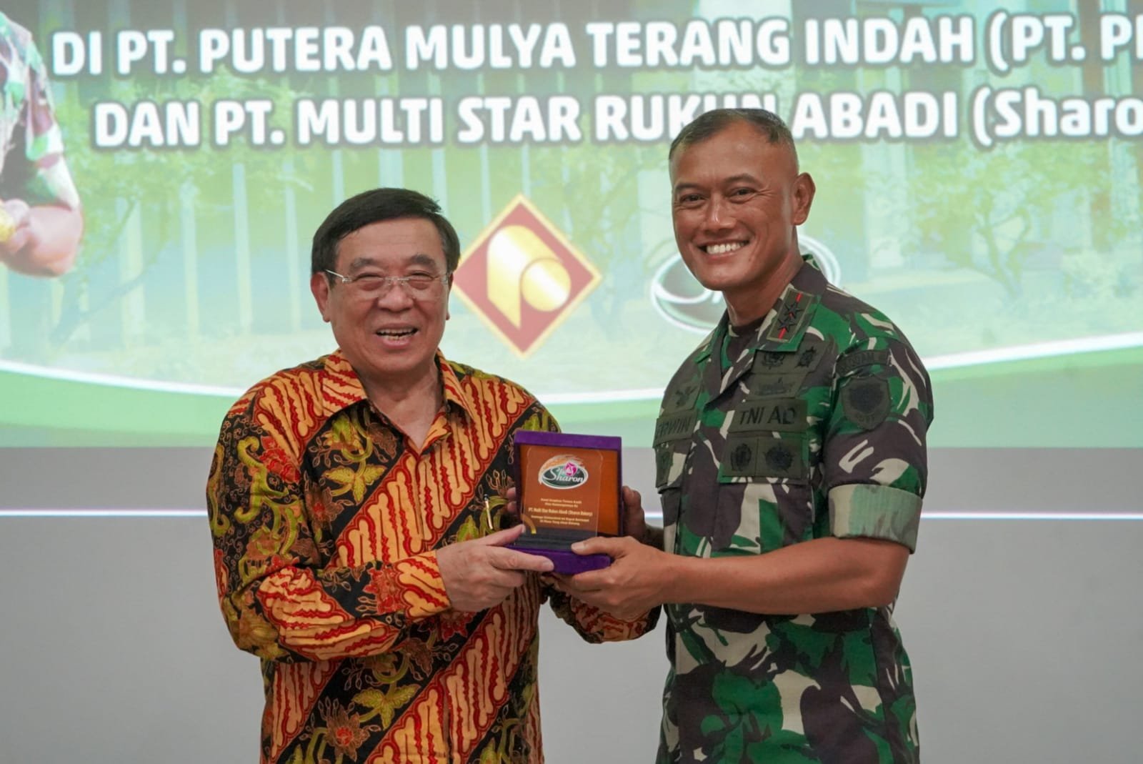 Presiden Direktur PT. Sharon dan PT. PMTI Bapak Usman, dalam sambutannya menyampaikan ucapan terima kasih kepada Pangdam III/Slw beserta rombongan yang mana telah menyempatkan waktu melaksanakan kunjungan kerja ke PT Sharon.