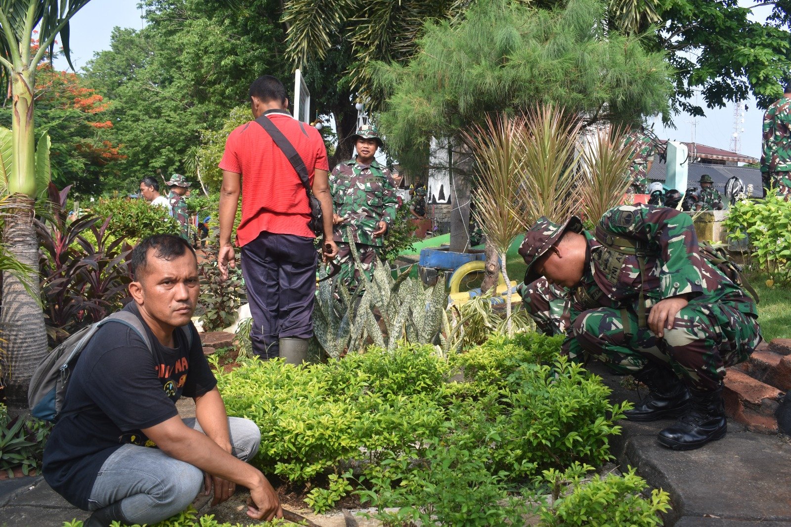 BN News. Demak || Puluhan anggota Kodim 0716/Demak dipimpin Pasi Teritorial Lettu Czi Muhamad Kamidi melaksanakan pembersihan Taman Kalituntang Lama yang berada di depan Makodim, Jalan Kyai Singkil Demak, Rabu (06/12/23).