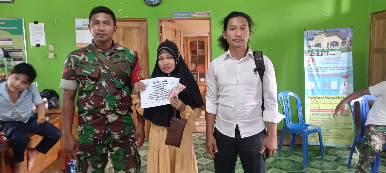 BN News. Barabai || Anggota Koramil 1002-4/Labuan Amas Selatan Koptu Faisol melaksanakan pendampingan pada penyaluran Bantuan Langsung Tunai (BLT) Dana Desa (DD), di Desa Panggang Marak Kecamatan Labuan Amas Selatan Kabupaten Hulu Sungai Tengah, Senin (11/12/2023).