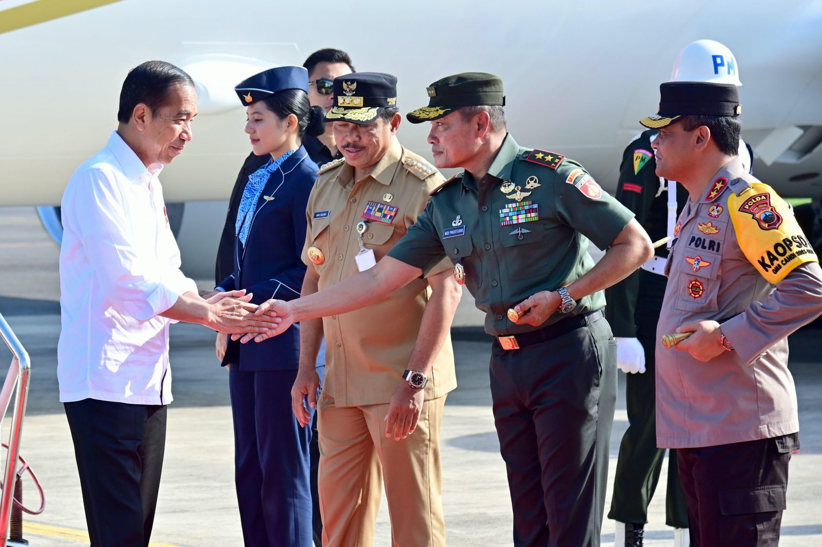Turut hadir pada penyambutan kedatangan Presiden RI di Lanumad Ahmad Yani, diantaranya Pj. Gubernur Jateng Drs. Nana Sudjana A.S., M.M, Kapolda Jateng Irjen Pol. Drs. Ahmad Luthfi, S.St.Mk., S.H. dan para pejabat Forkopimda Jateng.
