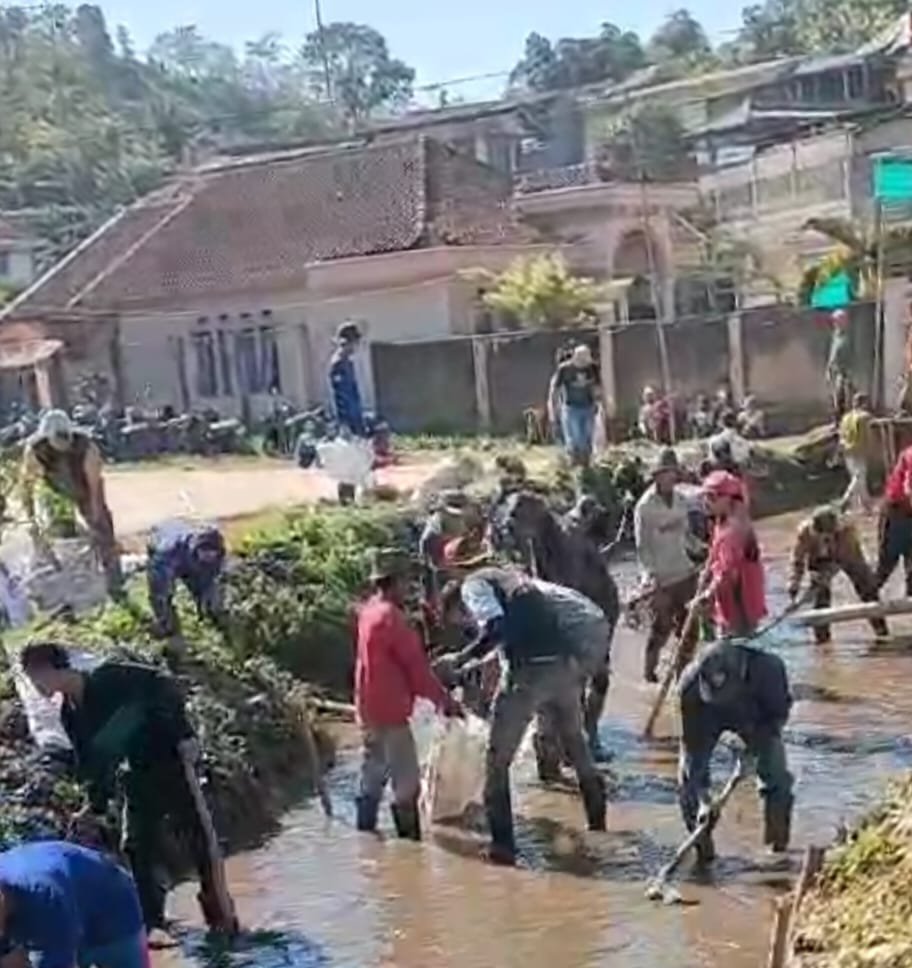 Pemdes Sukanagara Laksanakan PKTD Keruk Sungai di Kampung Paratag