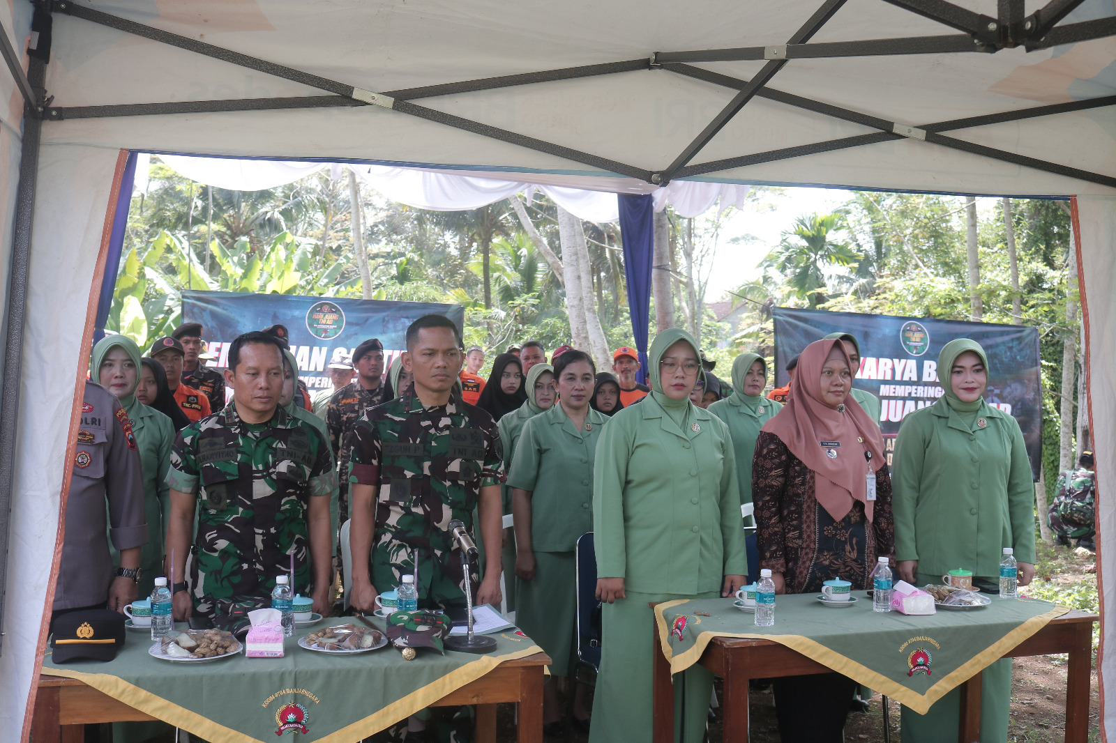 BN News. Banjarnegara || Dandim 0704/Banjarnegara Letkol Czi Teguh Prasetyanto, S.T., didampingi Ketua Persit Kartika Chandra Kirana Cabang XIX Dim 0704/Banjarnegara Ny. Diah Teguh Prasetyanto bersama Forkopimcam melaksanakan Vicon serentak Se jajaran TNI AD dengan Bapak KASAD Jenderal TNI Maruli Simanjuntak, M.Sc. dalam rangka Memperingati Hari Juang TNI AD dengan Tema TNI AD Bersama Rakyat Bersatu Dengan Alam Untuk NKRI dilanjutkan melaksanakan kegiatan Karya bakti di Desa Madukara Kecamatan Madukara Kabupaten Banjarnegara. Kamis (14/12/23).