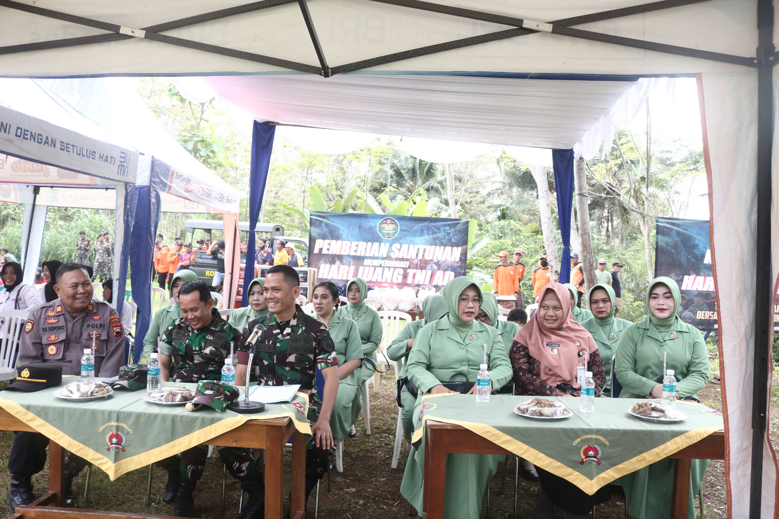 Dandim 0704/Banjarnegara menyampaikan ‘’Pelaksanakan kegiatan dalam rangka Hari Juang TNI AD yang ke 78, Kodim melaksanakan kegiatan yang pertama pemberian santunan kepada 100 paket yang diberikan kepada para Veteran, para Warakawuri, dan anak yatim piatu kemudian juga melaksanakan program penanaman pohon yang dilaksanakan di Desa Madukara drengan jumlah pohon yang ditanam sebanyak 250 pohon yang terdiri dari pohon buah-buahan dan pohon keras kemudian membersihkan Pasar Madukara dengan luas area sekitar 1300 meter persegi’’,jelasnya.
