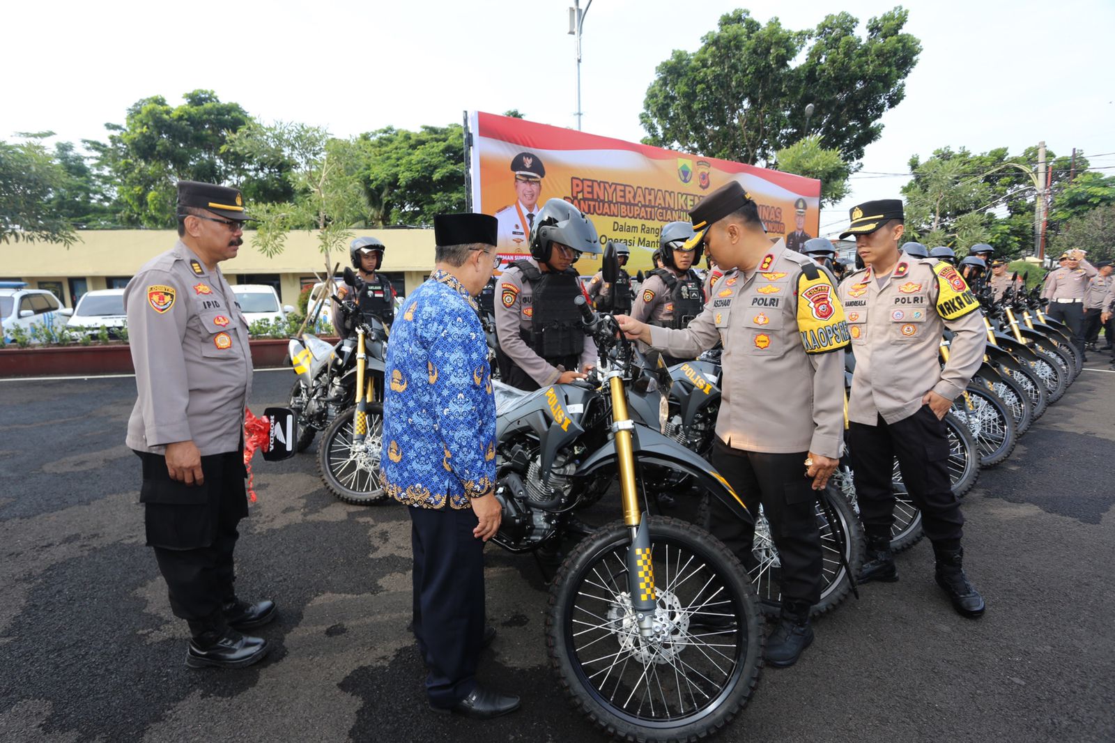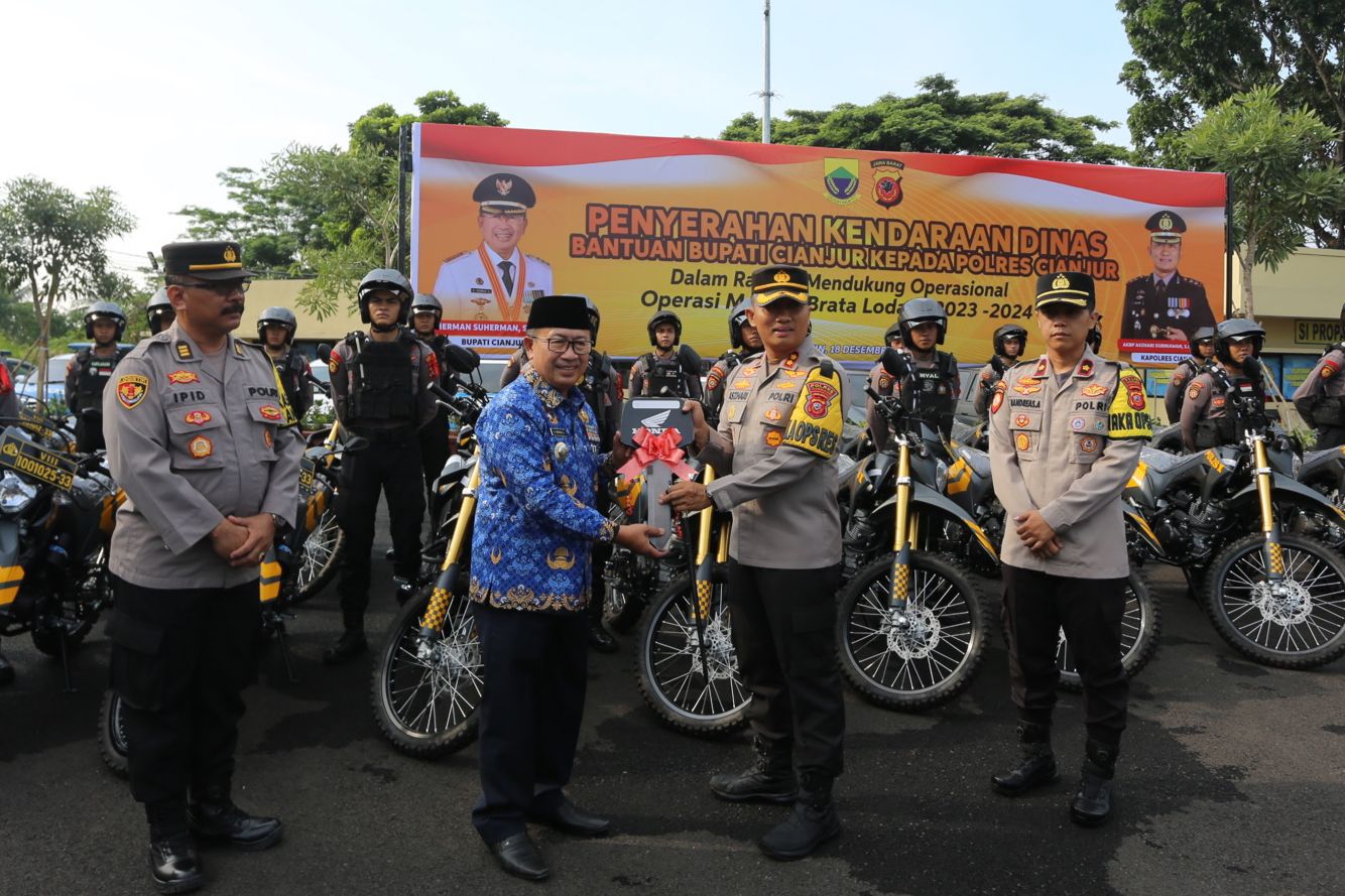 Bantuan diserahkan langsung oleh Bupati Cianjur H. Herman Suherman, S.T., M.Ap. dan diterima oleh Kapolres Cianjur AKBP Aszhari Kurniawan, S.H., S.I.K., M.Si.. didampingi sejumlah pejabat utama Polres Cianjur serta disaksikan para personel.