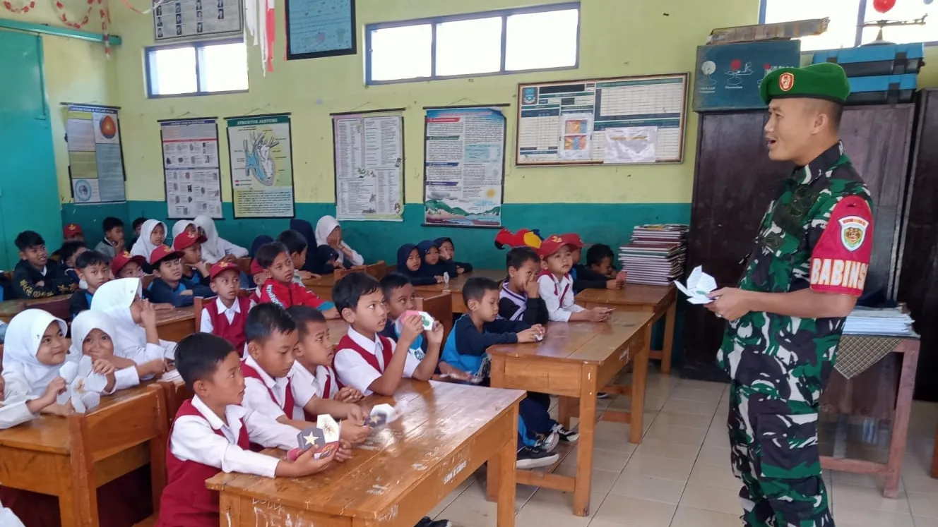 Dalam kegiatan yang dilaksanakan di ruang sekolah tersebut, Sertu Karsono dengan penuh semangat memperkenalkan nilai-nilai luhur Pancasila dan makna dari masing-masing butirnya kepada siswa-siswi kelas 5 dan 6 dengan dibantu alat peraga berupa leaflet yang sengaja dibagikan kepada para peserta didik.