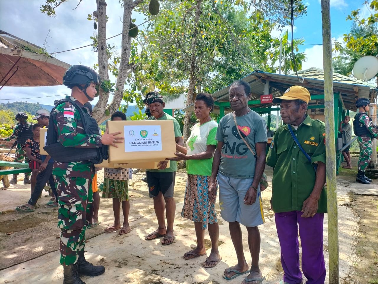 Pemberian bantuan sosial berupa paket sembako dilakukan oleh Pangdam III/Siliwangi terhadap warga di perbatasan Papua untuk meringankan kebutuhan warga yang melonjak saat akan merayakan Natal 2023 dan Tahun Baru 2024.