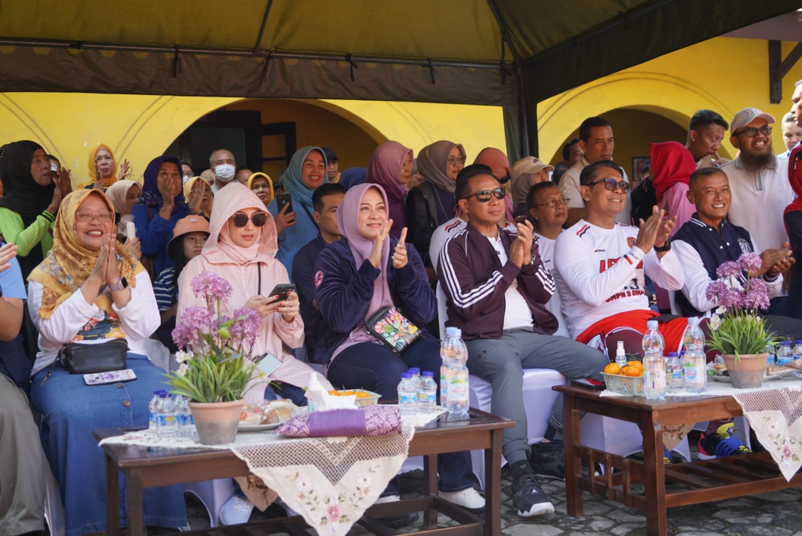 Panglima TNI Jenderal TNI Agus Subiyanto S.E., M.Si.,dan rombongan menuju lapangan basket untuk menyaksikan final fun basket alumni SMP N 2 Cimahi, lalu disambut dengan tarian Nusantara.