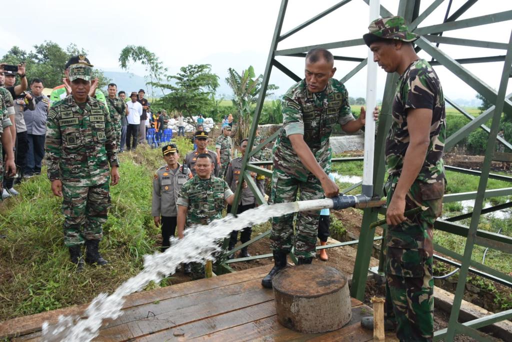 Pada kesempatan tersebut, Pangdam III/Slw melakukan peninjauan untuk memastikan Pompa Hydram berfungsi dengan baik. Bahkan Pangdam mengecek secara detail kerja pompa hingga air keluar secara maksimal dari kran dan siap untuk dialirkan ke persawahan.