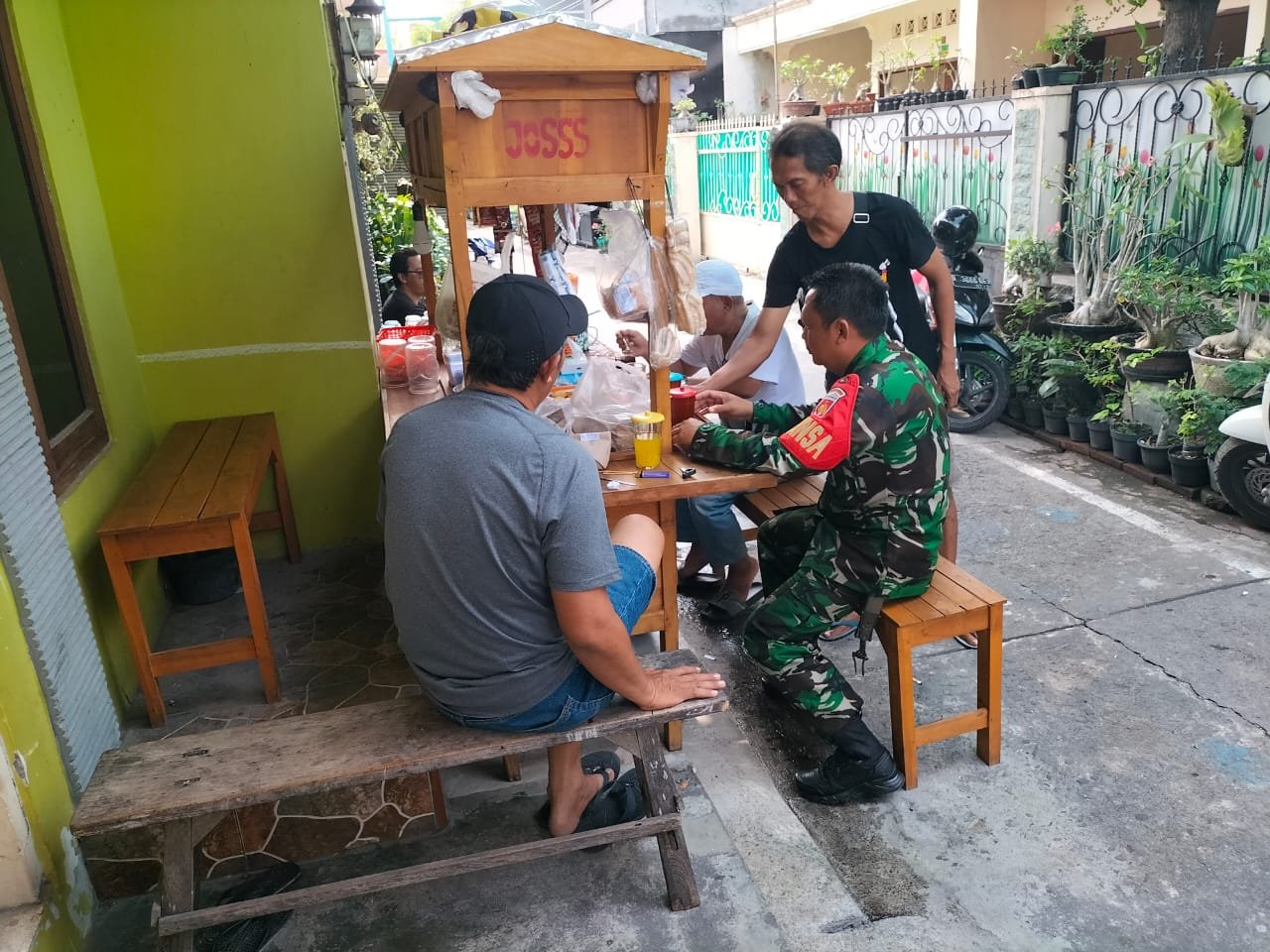 Selipkan Pesan Damai Dalam Pemilu, Babinsa Jayengan Komsos Di Warung Angkringan