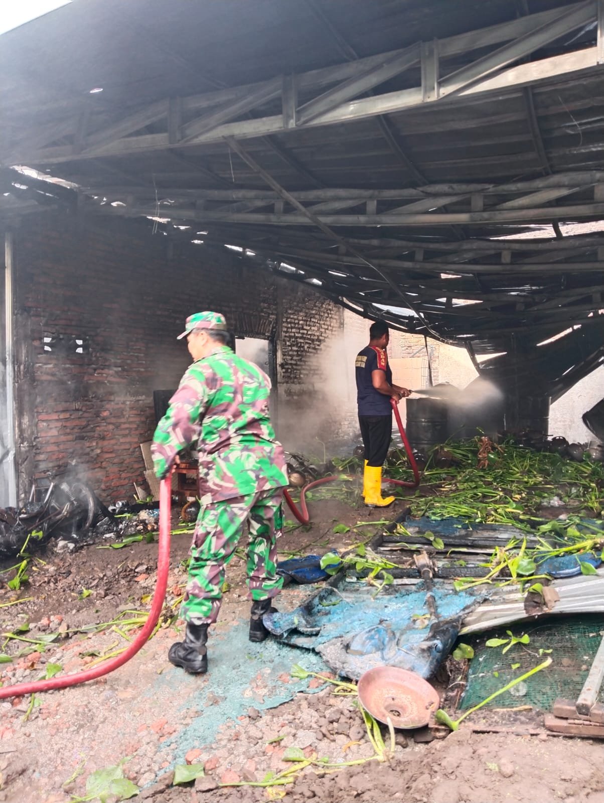 Kebakaran Rumah Akibat Ledakan Kompor Gas, Anggota Koramil 11/Sayung Bersama Polsek dan Damkar Bantu Padamkan Api