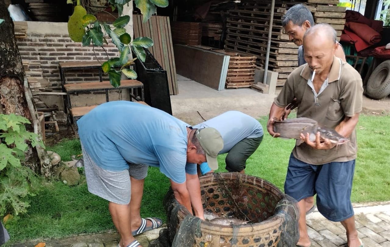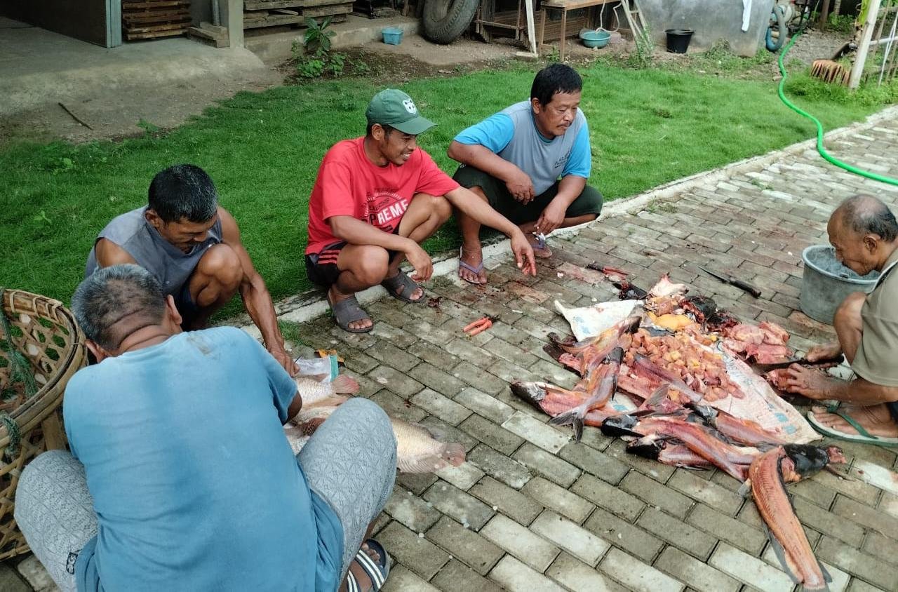 Hari ini, warga Madrasah gotong royong menguras kolam ikan milik salah satu pengurus, dan rame-rame memanen ikan gurameh, patin, dan ikan lele, dibersihkan, dipotong, dan dimasak dengan berbagai macam masakan, dan sebagai ungkapan syukur Alhamdulillah, ungkapan bahagia kami, atas berkenan hadirnya Nyai Hj. Hannik Maftukhah selaku Ketua Umum Jam’iyyah Perempuan Pengasuh Pesantren dan Muballighoh PP. Sirojurrokhim Klepu, Temanggung.