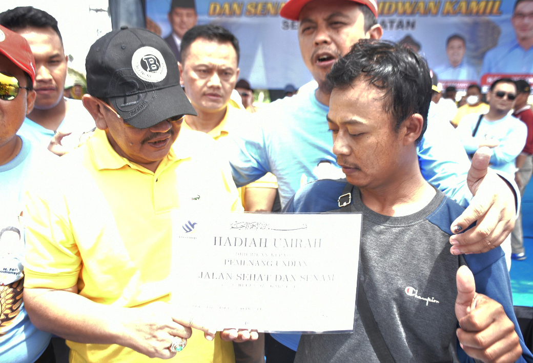 BN NEWS || Garut – Holil Aksan, figur yang telah mengukir jejak dalam dunia politik, menciptakan momen yang mengharukan di tengah masyarakat Pameungpeuk Garut. Dalam sebuah acara Apel Siaga Dan Senam Sehat Bersama Ridwan Kamil Se Jabar Selatan (10/12/23), Holil Aksan memberikan Hadiah Umroh kepada Dadang, seorang penjual tahu lokal. Tindakan ini tidak hanya menjadi kejutan, tetapi juga menyala-nyalakan semangat kemanusiaan di kawasan Priangan.