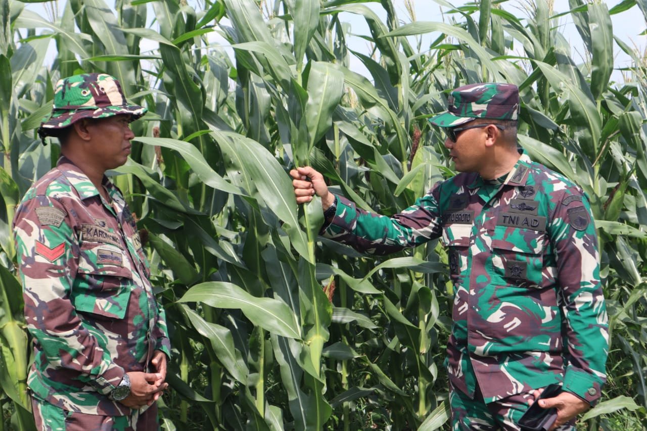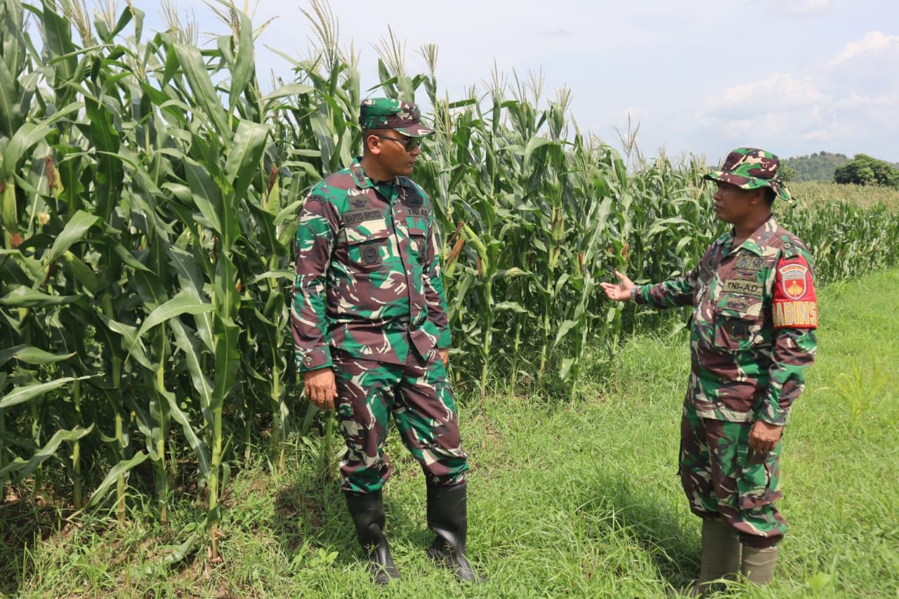 BN News. Brebes || Guna mewujudkan program ketahanan pangan di wilayah kabupaten Brebes, Komandan Kodim 0713 Brebes, Korem 071 Wijayakusuma, Letkol Infanteri Sapto Broto, S.E., M.Si turun langsung meninjau tanaman jagung di lahan Demplot seluas 2 hektar, di areal lahan Desa Songgom, Brebes, Jawa Tengah. Sabtu (13/01/2023).
