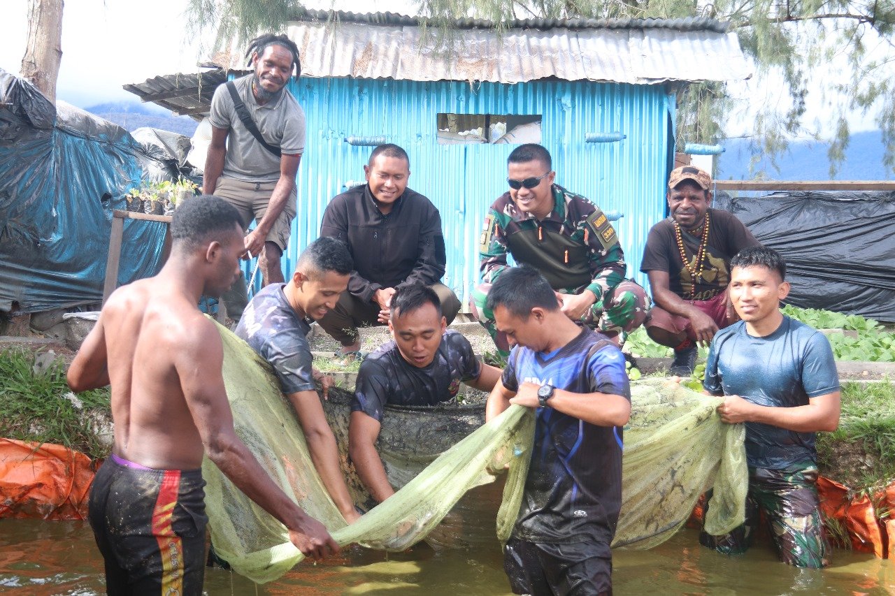 Lettu Inf Rudi Hendrawan, Pasilog Satgas menjelaskan bahwa Satgas 330 mengajak warga Intan Jaya untuk turut menyaksikan proses panen Ikan Lele di Pos Mamba.