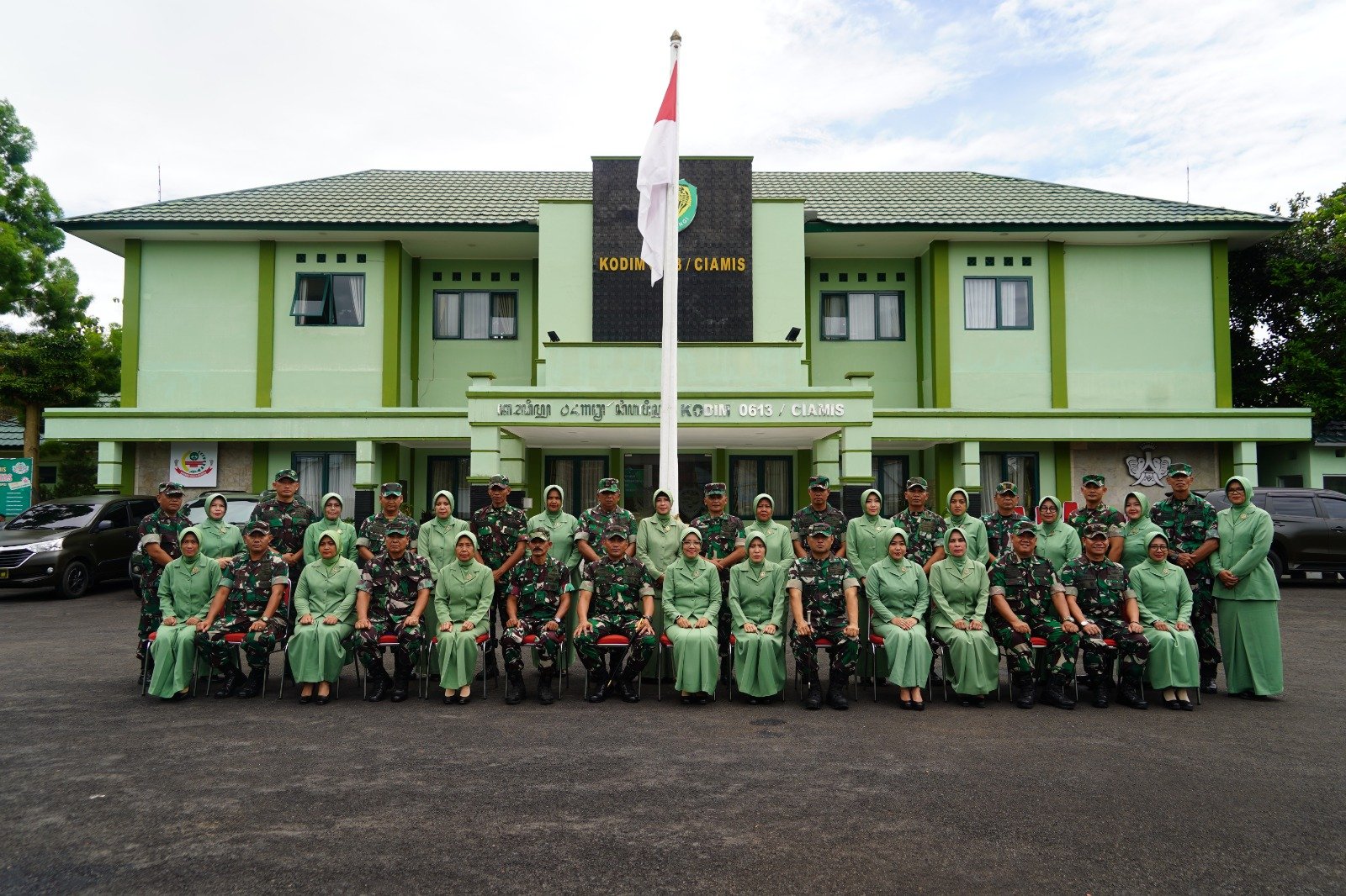 Turut hadir Dandim 0613/Ciamis Letkol Inf Wahyu Alfiyan Arisandi,S.I.P. M.I. Pol., Kasiops Korem 062/Tn Mayor Inf Enggar, Ws. Kasiter Korem 062/Tn Mayor Inf Nazwir, Kasdim 0613/Cms Mayor Inf Nirca, Wakil Ketua Persit KCK Koorcabrem 062 PD III/Slw Ny. Dini Ageng Wahyu Romadhon beserta pengurus.