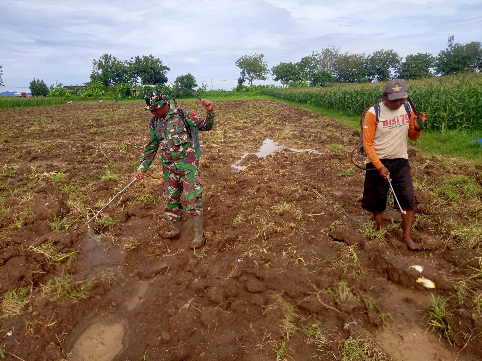 Sementara Babinsa Koptu Kardiyono, Koramil 17 Songgom, Kodim 0713 Brebes bersama dengan petani lainnya menyempotkan hama rumput agar tidak tumbuh, penanaman bibit akar wangi ini disamping untuk pembibitan, juga untuk keperluan lainnya guna meningkatkan kesejahteraan petani dan juga Babinsa yang mengelola.