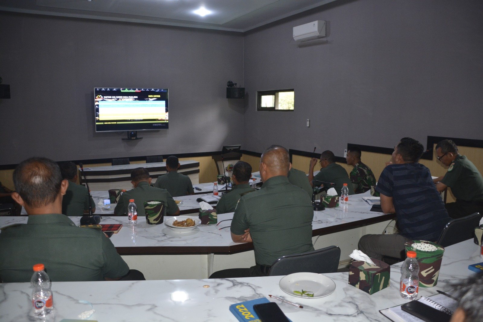 Dalam vicon tersebut Kasrem menyampaikan, “ucapan terima kasih kepada para peserta rapat yang telah hadir baik secara tetap muka maupun secara virtual. Untuk kita bersama-sama bertindak dan berbuat, untuk melakukan penghematan listrik, Gas dan Air (LGA) permasalahan yang mengakibatkan terjadinya kenaikan LGA di satuan jajaran, dikarenakan adanya penggunaan listrik pada kegiatan Rehab perkantoran yang menggunakan listrik tanggungan negara, mess dan Rumdis masih menggunakan listrik yang menjadi tanggungan negara, pemasangan lampu sorot di depan perkantoran, penggunaan listrik dan AC di aula pada saat sewa oleh penyewa, penggunaan mesin air/Sanyo untuk penarikan air.”, Tutur Kasrem.