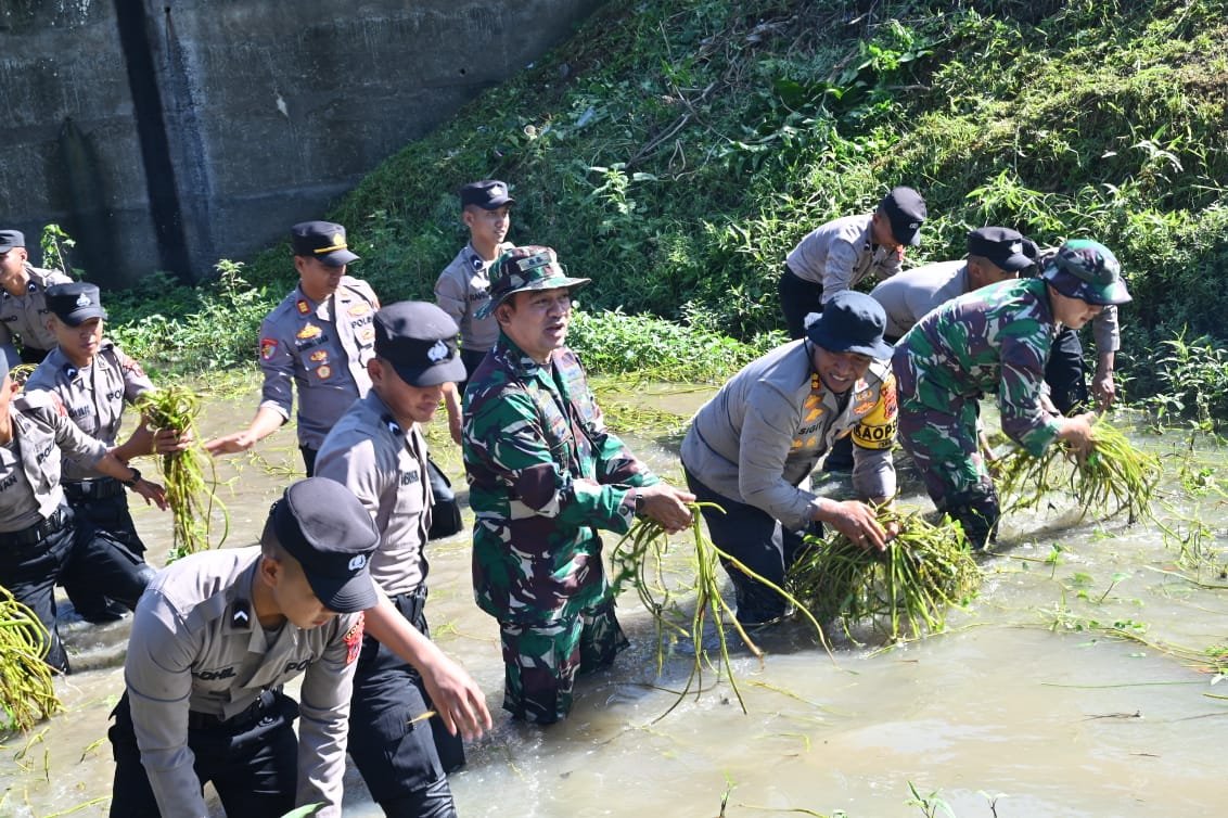 BN News. Sukoharjo || Jumat (26/01/24) Dandim 0726/Sukoharjo Letkol Czi Slamet Riyadi, S.E., dan Kapolres Sukoharjo AKBP Sigit, S.I.K., M.H., memimpin langsung Karya Bakti TNI-Polri bersama warga masyarakat melaksanakan pembersihan aliran sungai Siluwur, desa Tegalsari, Kecamatan Weru.