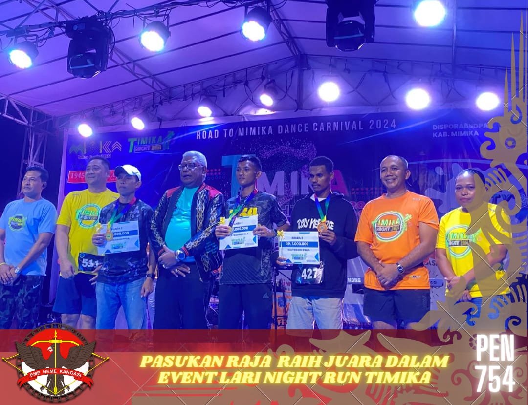 BN News. Timika || Prajurit Raja berhasil menjadi juara di Event lari malam 7K Timika Night Run yang diselenggarakan oleh Mimika Dance Carnival 2024 pada, Sabtu (27/1/24).
