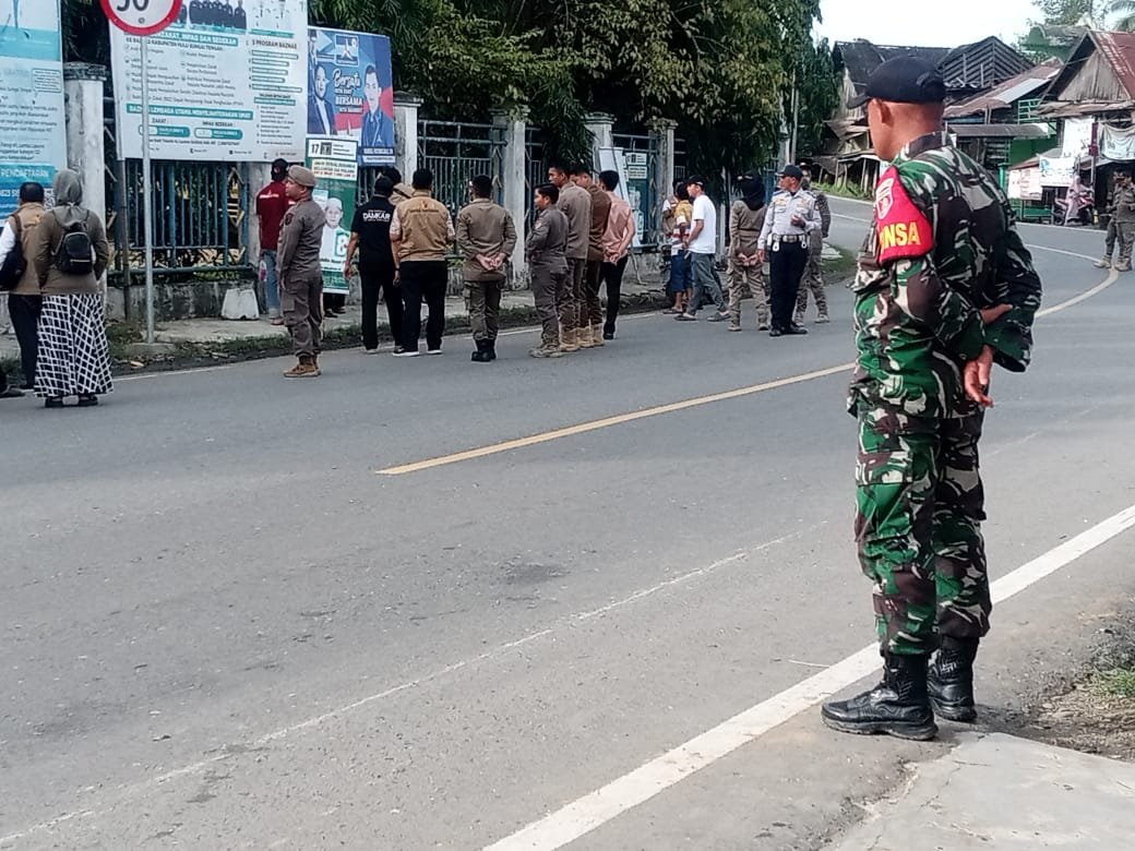 Personel Kodim 1002/HST dari Koramil 1002-04/Labuan Amas Selatan Sertu Irwan Yuliadi melaksanakan pendampingan penertiban Alat Peraga Pemilu (APK) oleh Bawaslu HST bersama dengan Satpol PP dan Damkar Kab. HST serta Polres HST.Sabtu (03/02/24).