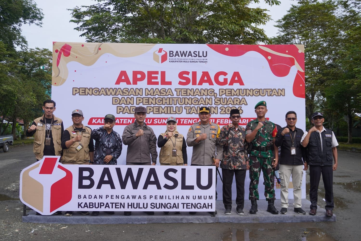 Pelepasan logistik pemilu 2024 berlangsung di Halaman Kantor Kecamatan Batang Alai Timur Jl. Ksatria RT. 04 Tandilang Kab. Hulu Sungai Tengah. Minggu (11/02/2024).