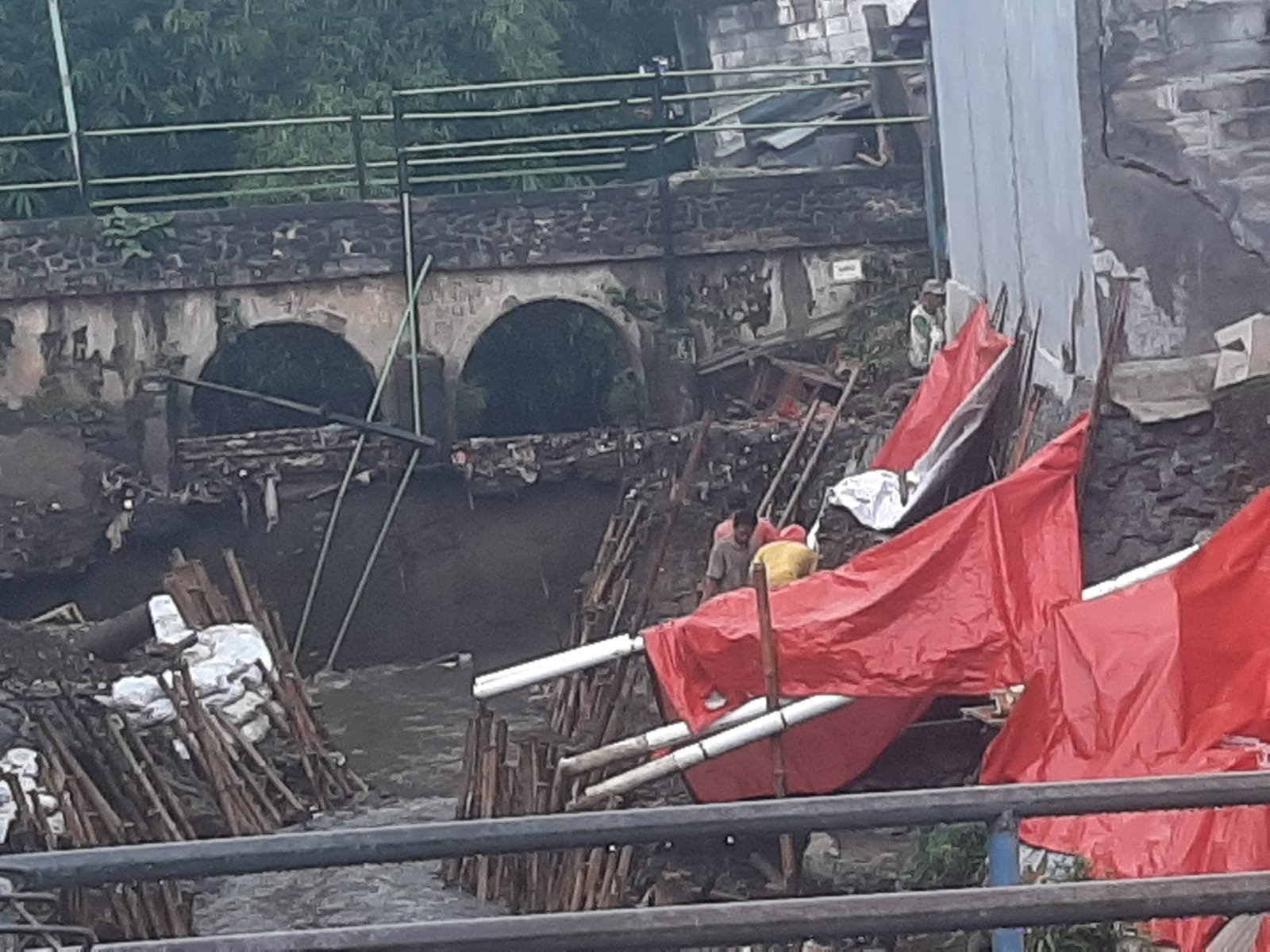 Dalam Longsoran itu terlihat Jembatan kecil tertulis tahun 1881 dan menjadi tontonan warga sekitar.