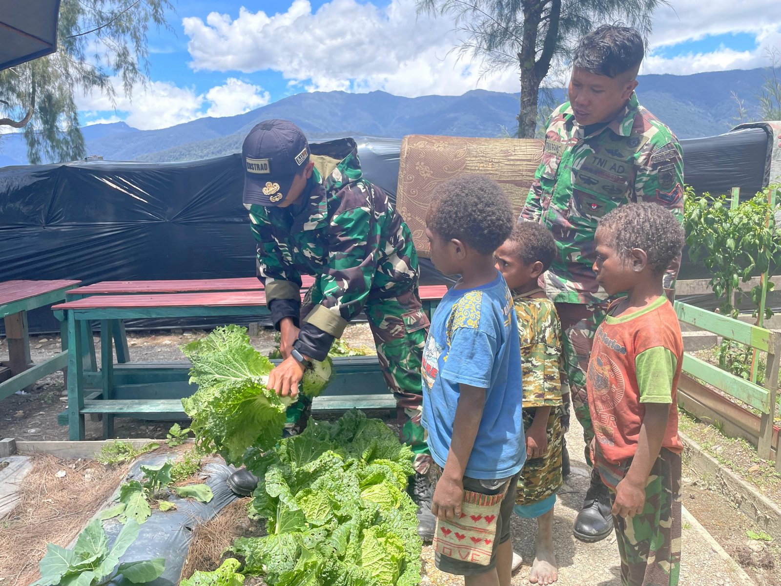 BN NEWS || Intan Jaya – Tagline “KOTEKA” (Kostrad Tebarkan Kedamaian) yang diusung oleh Satgas Pamtas Mobile Yonif 330 Tri Dharma dalam masa penugasannya di wilayah Kabupaten Intan Jaya, Papua Tengah terus diimplementasikan secara berkelanjutan. Alhasil, banyak hal positif yang manfaatnya dapat dirasakan dan dinikmati secara langsung oleh masyarakat di daerah penugasan. Seperti halnya kali ini, para Ksatria Tri Dharma mengajak para bocah cilik (Bocil) untuk memanen Sawi Putih yang ada di Kebun Pos Mamba, distrik Sugapa, Kab. Intan Jaya, Papua Tengah, pada Senin (19/2/24).