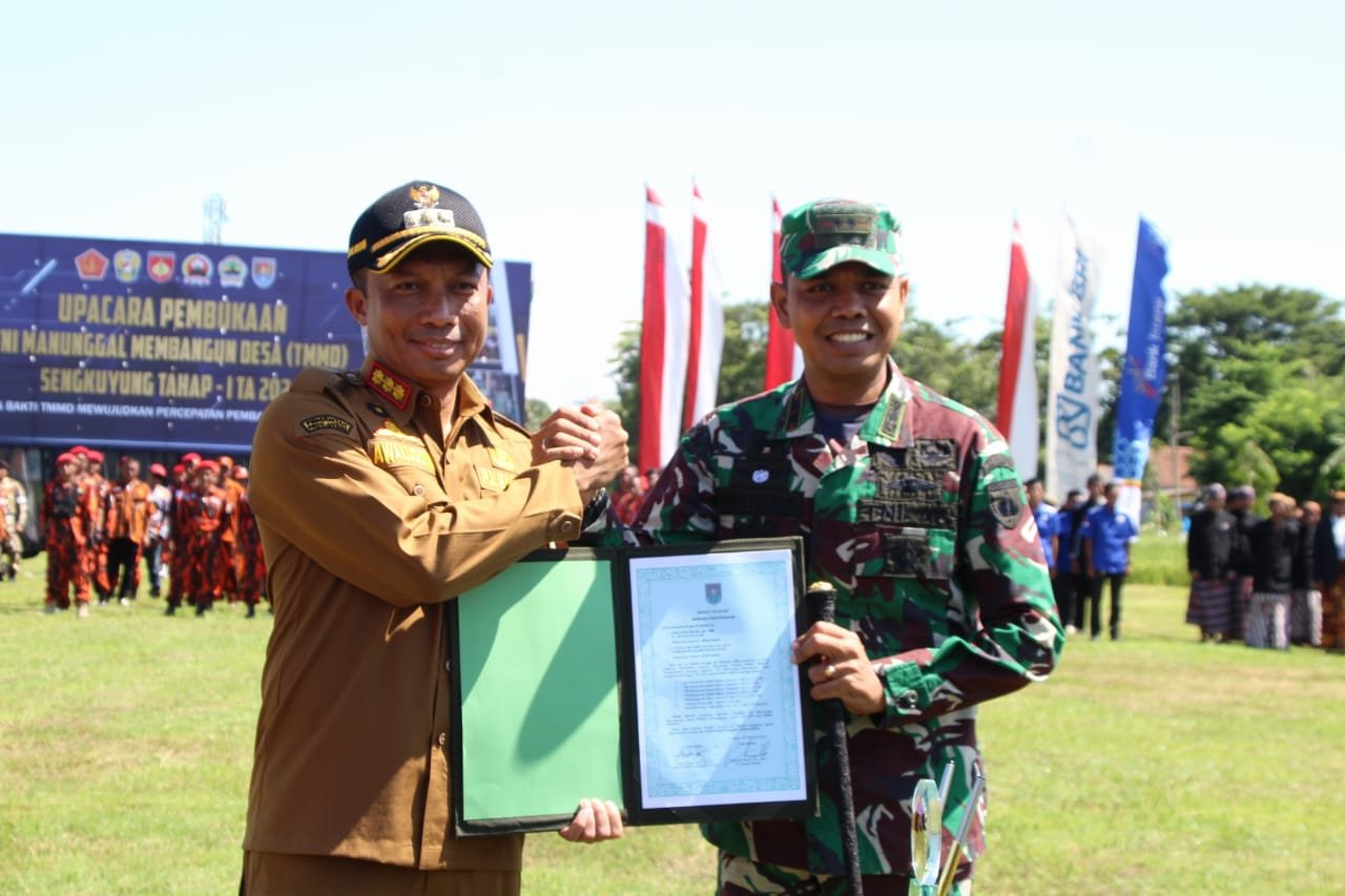Secara simbolis TMMD Sengkuyung di Desa Kalikudi Kecamatan Adipala dibuka dengan upacara yang dipimpin oleh Penjabat Bupati Cilacap, di lapangan desa setempat. TMMD akan berlangsung selama 30 hari, mulai dari tanggal 20 Februari sampai dengan 20 Maret 2024.