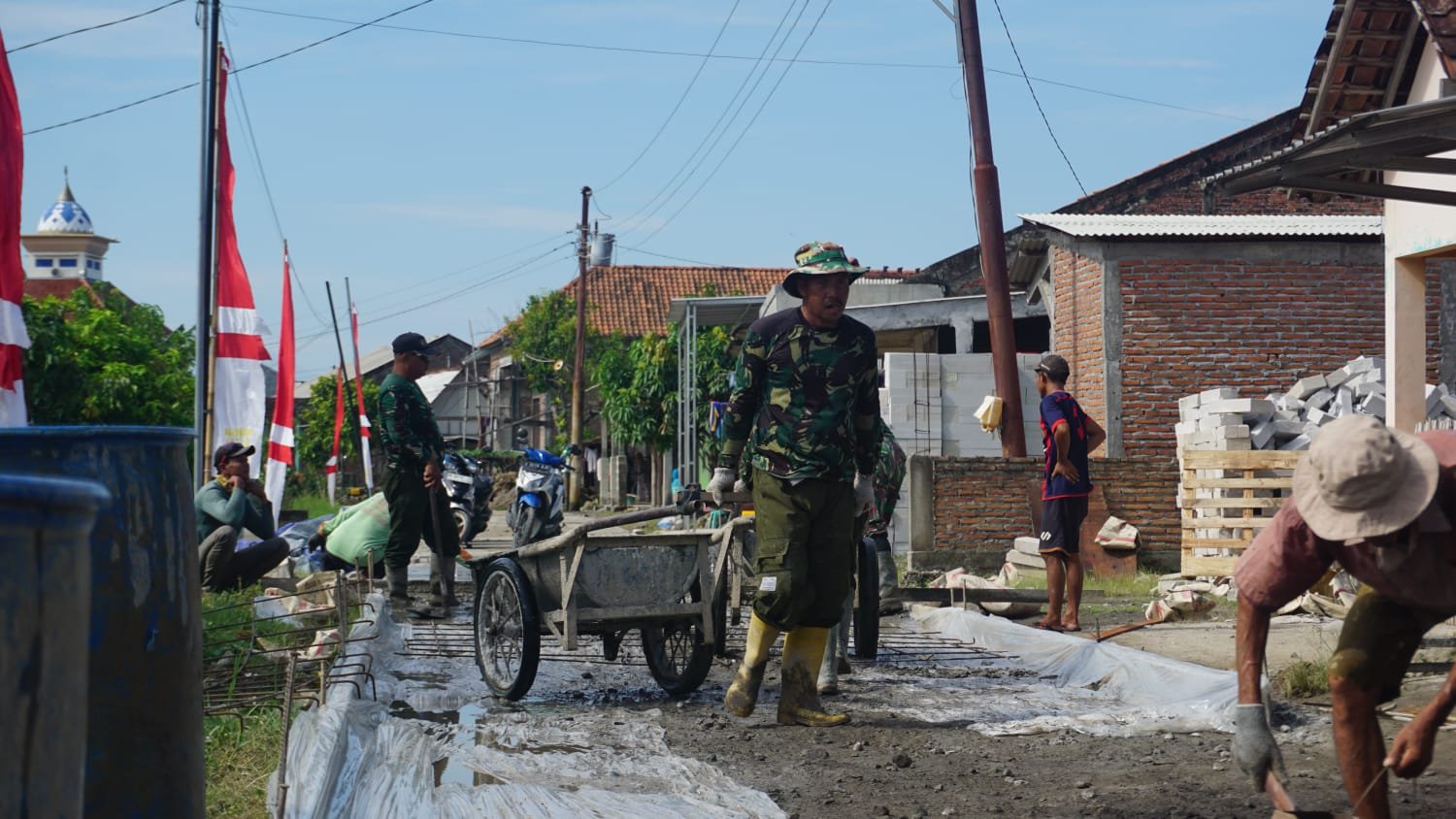 Komandan Kodim 0716/Demak Letkol Kav Maryoto, S.E., M.Si., M.M., menyampaikan anggota Satgas dan warga masyarakat dalam melaksanakan pembangunan jalan di lokasi TMMD selalu mengedepankan semangat gotong royong bersama seluruh lapisan masyarakat setempat. Anggota Satgas dan warga terus bersatu padu, bahu membahu menuntaskan progres sasaran pengecoran jalan dengan lebar 3 meter dan tinggi 0,15 meter.