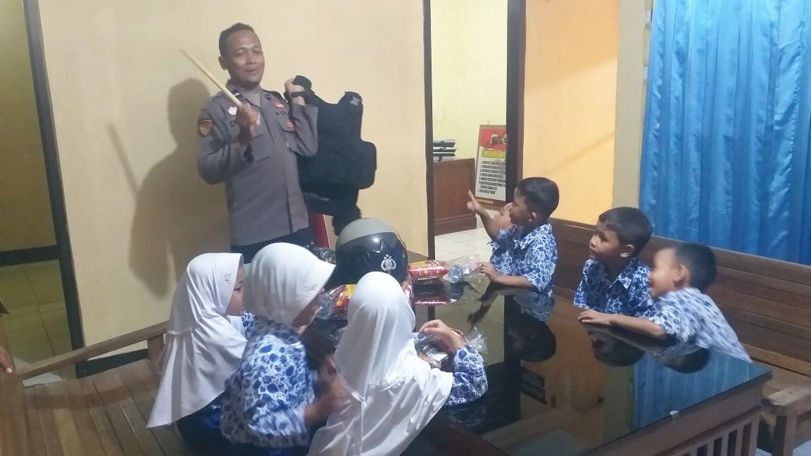 “Dengan mengunjungi kantor polisi diharapkan bisa menjadi pembelajaran bagi anak didik untuk mengenal secara langsung profesi kepolisian termasuk peralatan yang dipakai saat bertugas,” ucapnya.