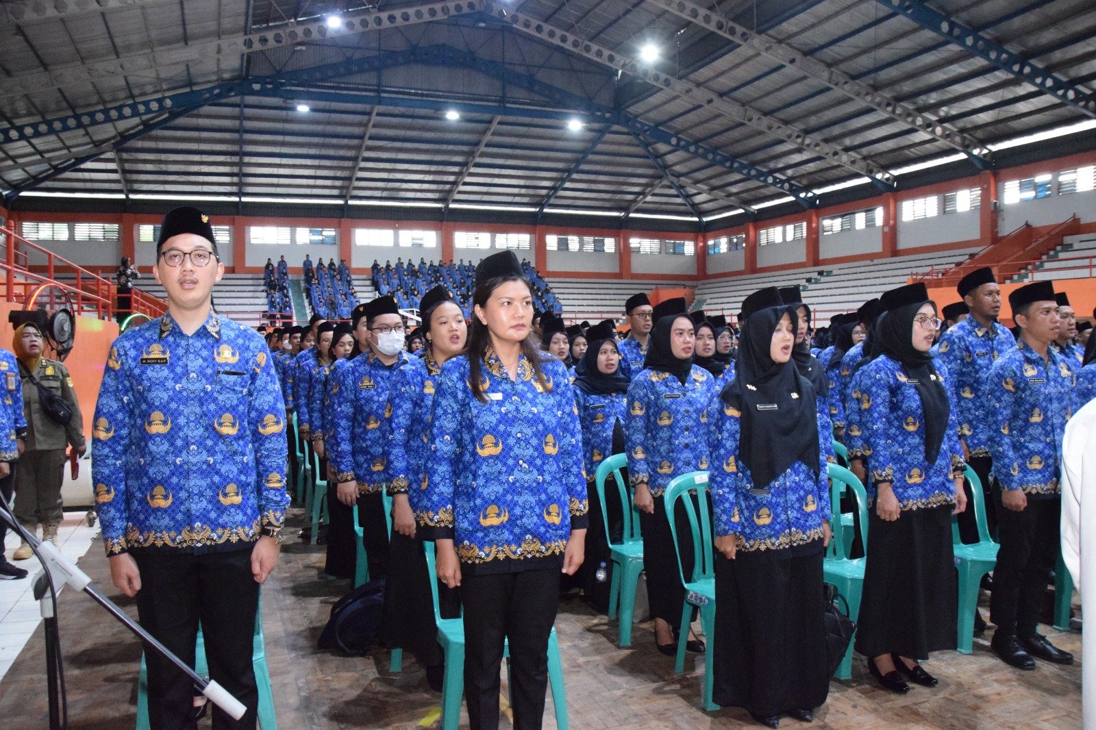 BN News. Banyumas || Pj Bupati Banyumas Hanung Cahyo Saputro melantik dan mengambil sumpah jabatan 1195 Calon Pegawai Negeri Sipil (CPNS) tahun angkatan 2021 menjadi Pegawai Negeri Sipil (PNS) pada Jum’at (1/3/24) di Sasana Krida Gor Satria Purwokerto.