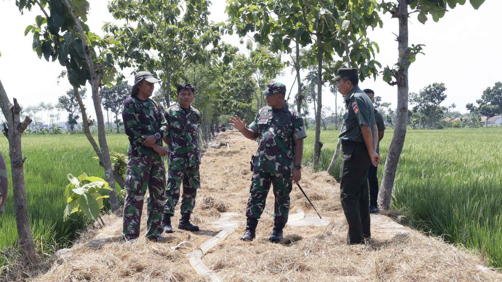 BN News. Pemalang || Komandan Kodim 0711/Pemalang Korem 071/Wijayakusuma Letkol Inf Ad Afri Verdaniex, S.I.P., yang didampingi Pasiter Lettu Inf Nurna Firdous dan Danramil 04/Comal Kapten Arm Andumiyanta, meninjau langsung ke lokasi pelaksanaan kegiatan Tentara Manunggal Membangun Desa (TMMD) Sengkuyung tahap I tahun 2024 di desa Susukan kecamatan Comal kabupaten Pemalang, Selasa (5/3/2024).
