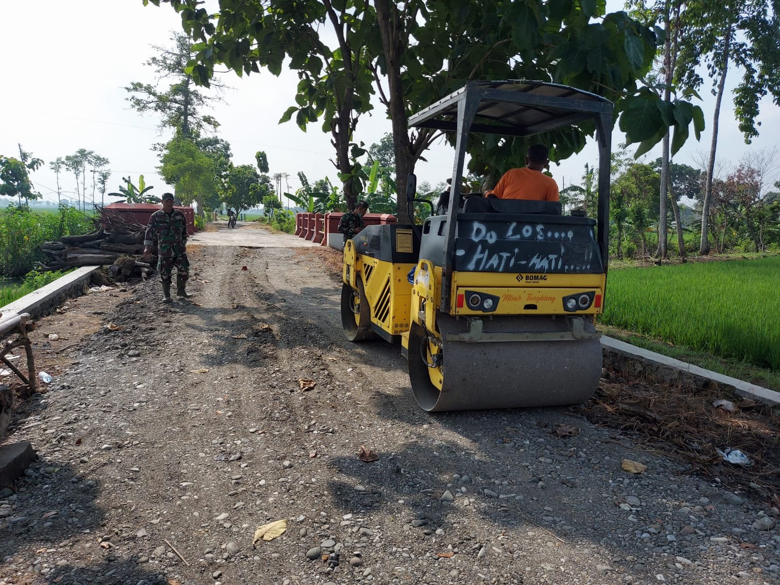 Danramil 04/Comal Kodim 0711/Pemalang Korem 071/Wijayakusuma Kapten Arm Andumiyanta menyampaikan, pekerjaan yang dlakukan sekarang yaitu memadatkan jalan sepanjang 290 meter lebar 3,5 meter dengan menggunakan alat berat berupa Slender.